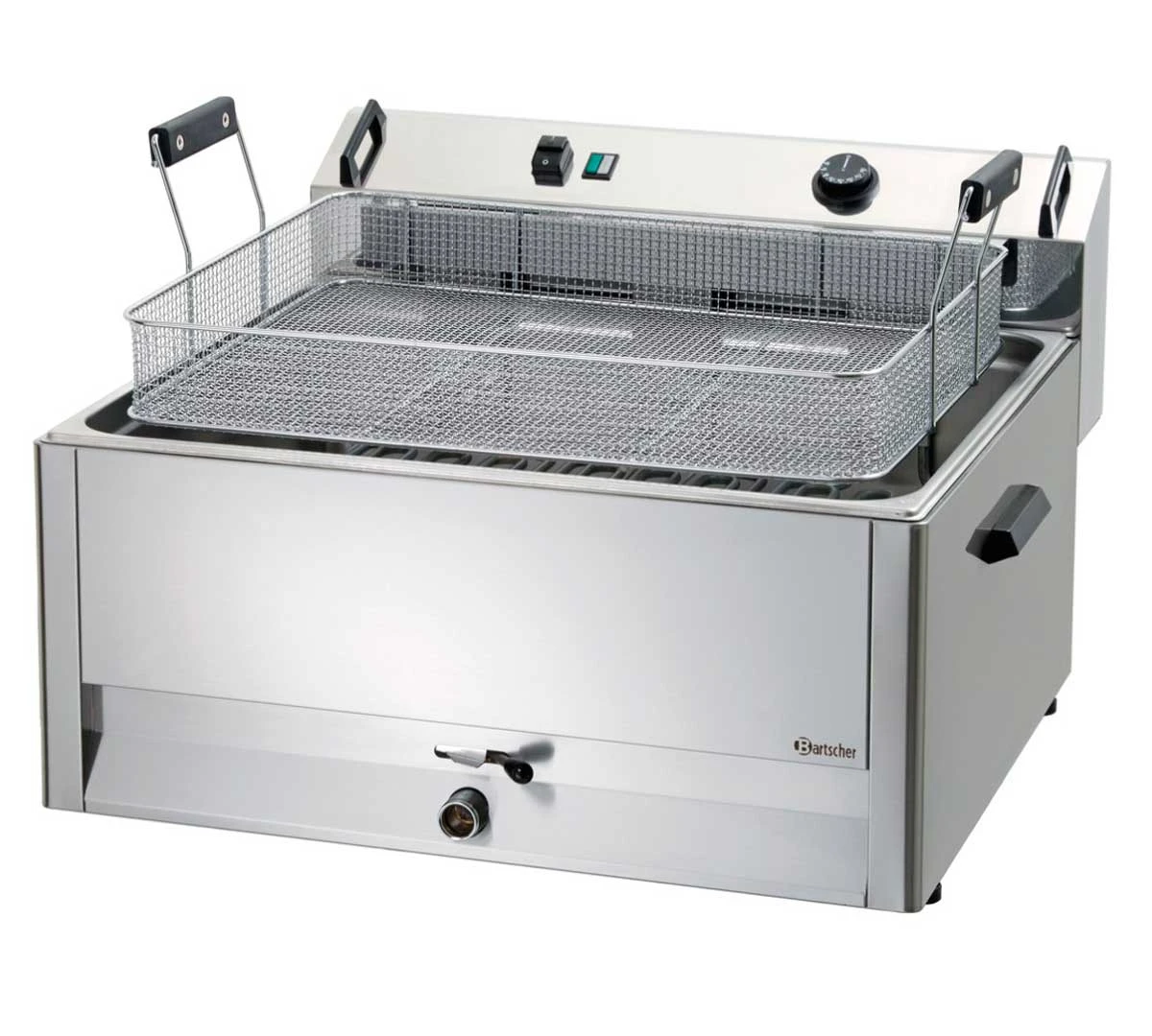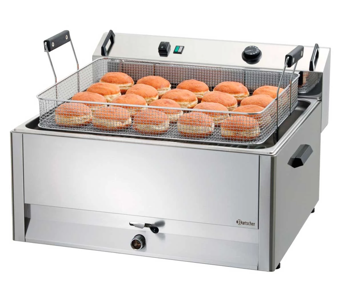 La Freidora Pastelería BF 30E de Bartscher tiene 1 cuba con zona fría diseñada para pastelería. También está indicada para freír cachopos. La cesta está incluida.