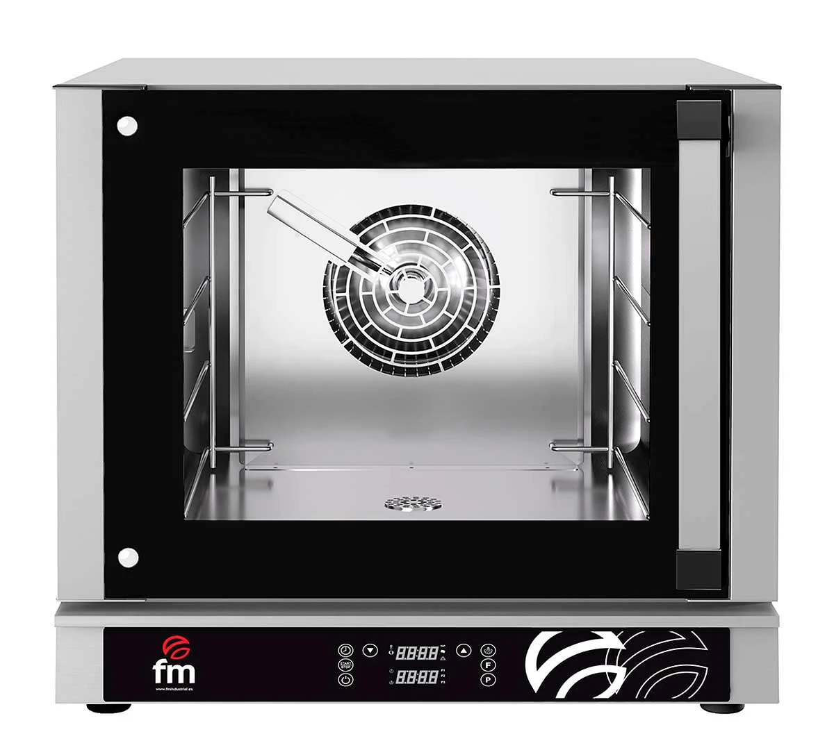 El Horno Eléctrico de Convección RXD 384 de FM incorpora humedad regulable de 0 a 100%. Con capacidad para 4 bandejas de 43 x 34 cm o GN 2/3.