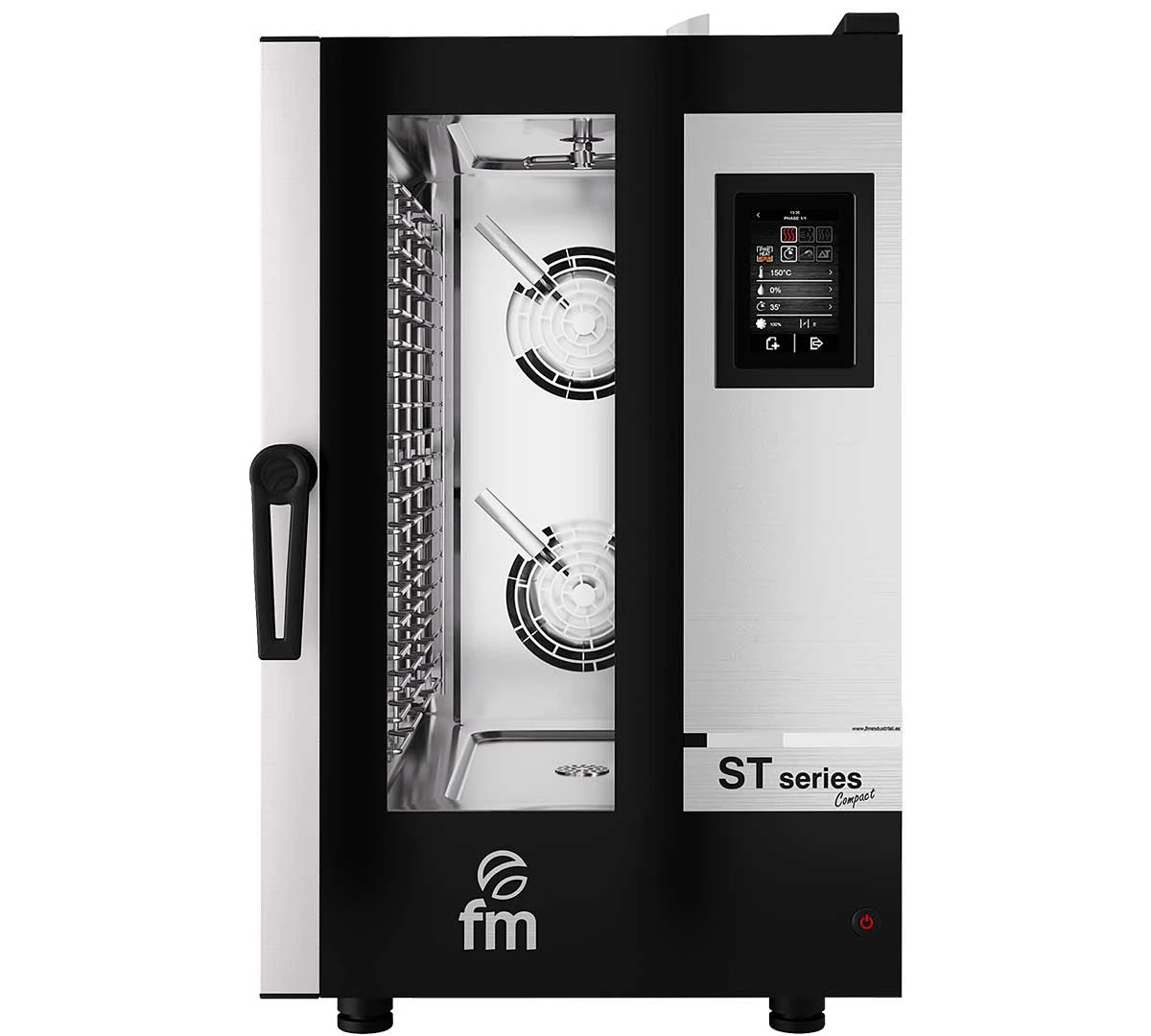 El Horno Mixto Eléctrico STC 1011 V5 de FM Industrial tiene panel de control digital y la posición de la bandeja es longitudinal. Tiene una capacidad para 6 bandejas GN 1/1.