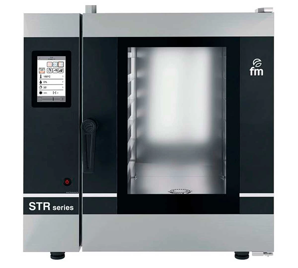 El Horno Mixto Eléctrico STR 106 V1 de FM funciona con mando digital y la posición de la bandeja es longitudinal.