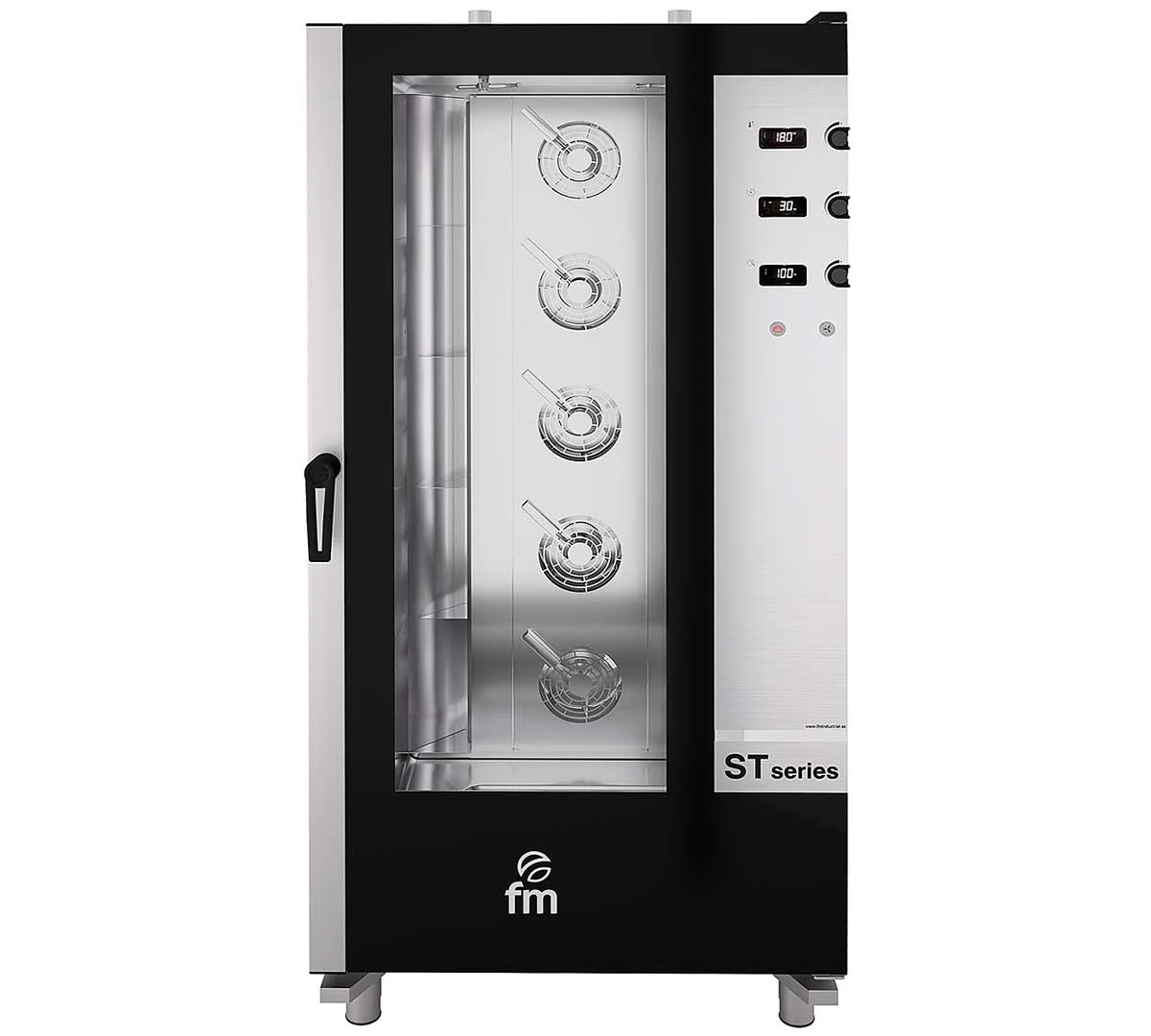 El Horno de la Serie ST Bakery STB 616 ET de FM dispone de un panel de control electromecánico fácil de usar y tiene capacidad para 16 bandejas 60 x 40 cm.