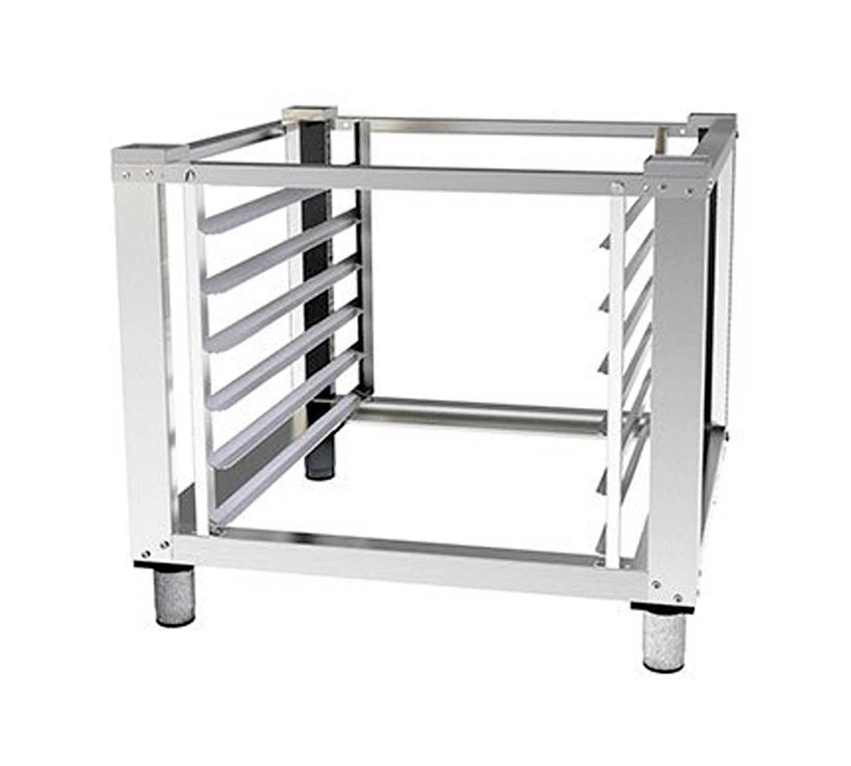 El Soporte ST con 7 Guías de FM, está fabricado en acero inoxidable y permite colocar los hornos de la serie ST para elevarlos del suelo. Tiene capacidad para 7 bandejas.