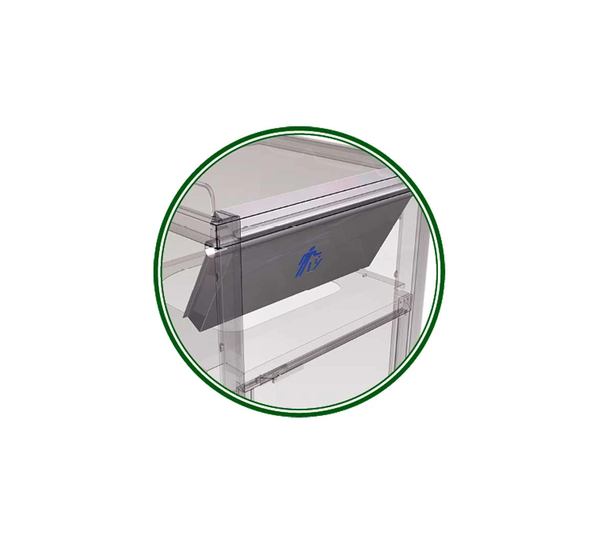 - La tolva de caída de los desperdicios es de una sola pieza y no posee juntas ni huecos, lo que facilita la limpieza.