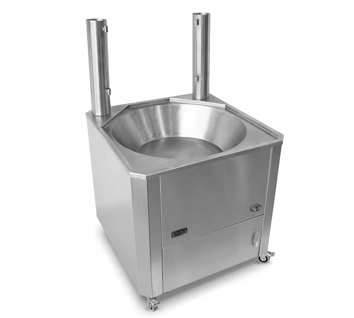 Dispone de quemador industrial de alta potencia con control digital y sonda de temperatura, apto para uso en el interior o exterior.