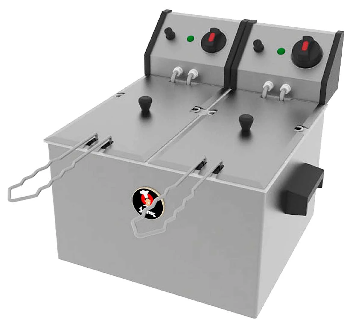 La Freidora Sobremesa J-3/2 de Jemi, está construida en acero inoxidable y provista de termostato de temperatura y termostato de seguridad.