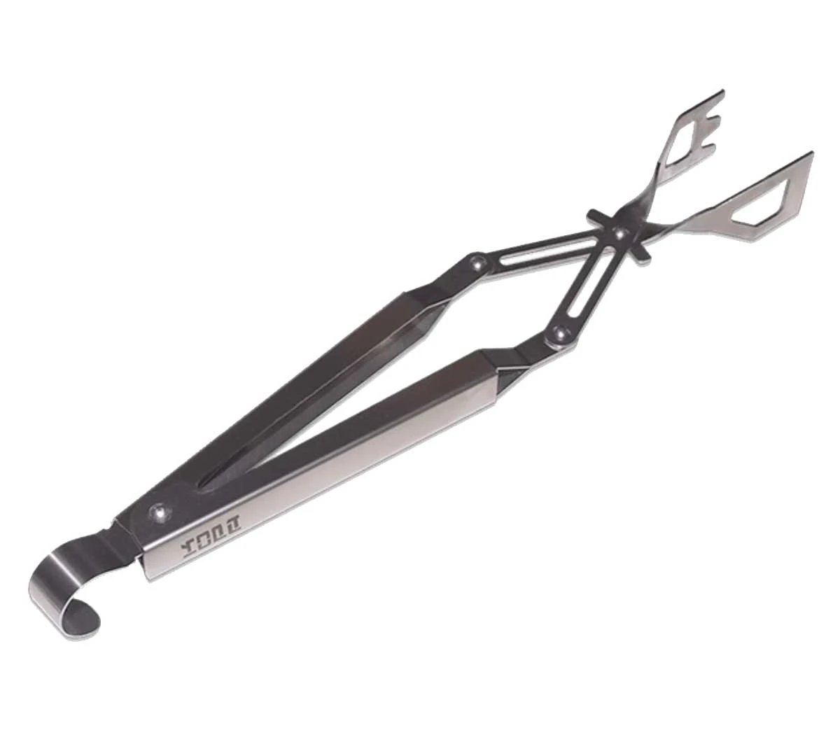 - El diseño de la pinza encaja en las rejillas de la parrilla Kopa. Se desliza entre las varillas y levanta fácilmente los alimentos de la rejilla.