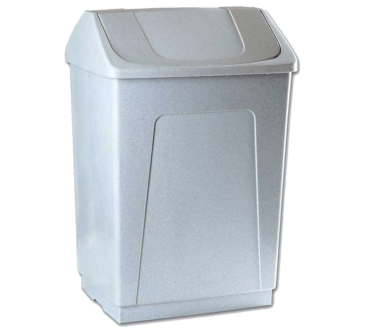El Cubo Pongotodo de Vajillas Llorca tiene una capacidad de 55 litros y la tapa es basculante. Está apoyado sobre dos pivotes en los laterales, de forma que se pueda accionar con facilidad.