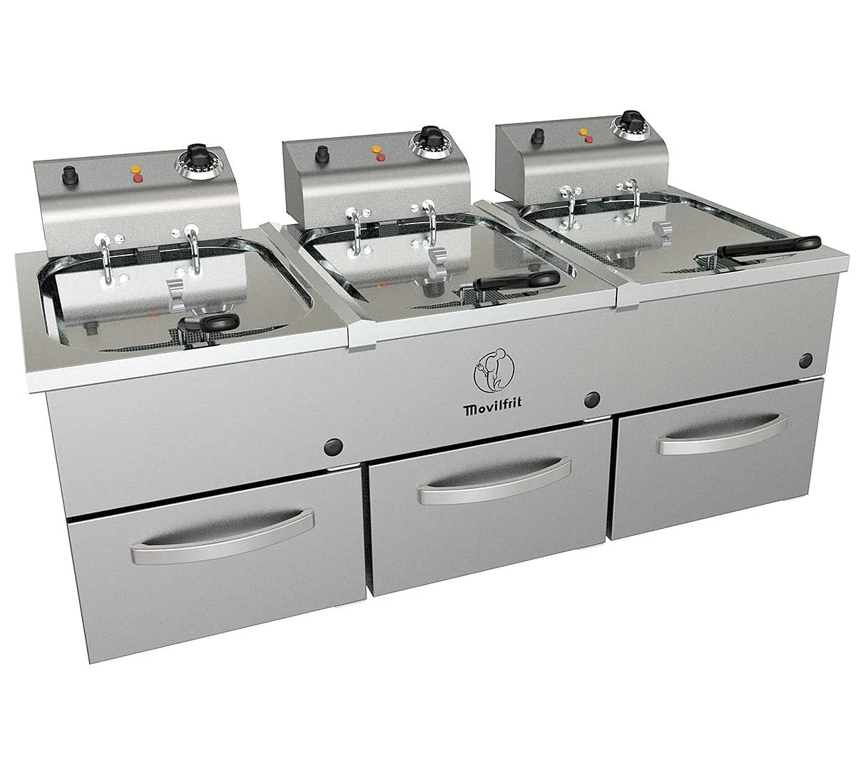 | Movilfrit Freidora FAP Triple Cabezal Fijo 3 Cubas de 10 litros – Potencia 4+4+4 kW | ||