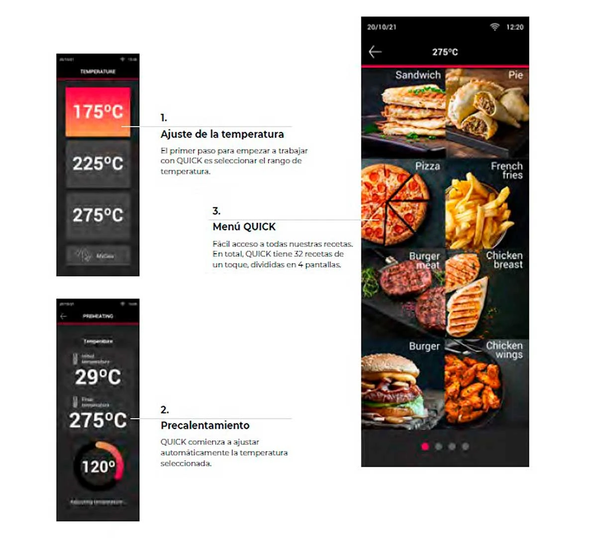 Empanadas en 40 segundos. Pescado, pizzas y patatas fritas en 3 min y sándwiches en 1 minuto.