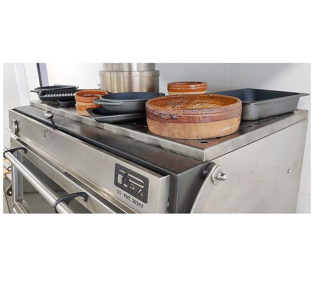 La Bandeja Calientaplatos de Pira forma parte de los accesorios exclusivos de Hornos Brasa. Está disponible en varios modelos.