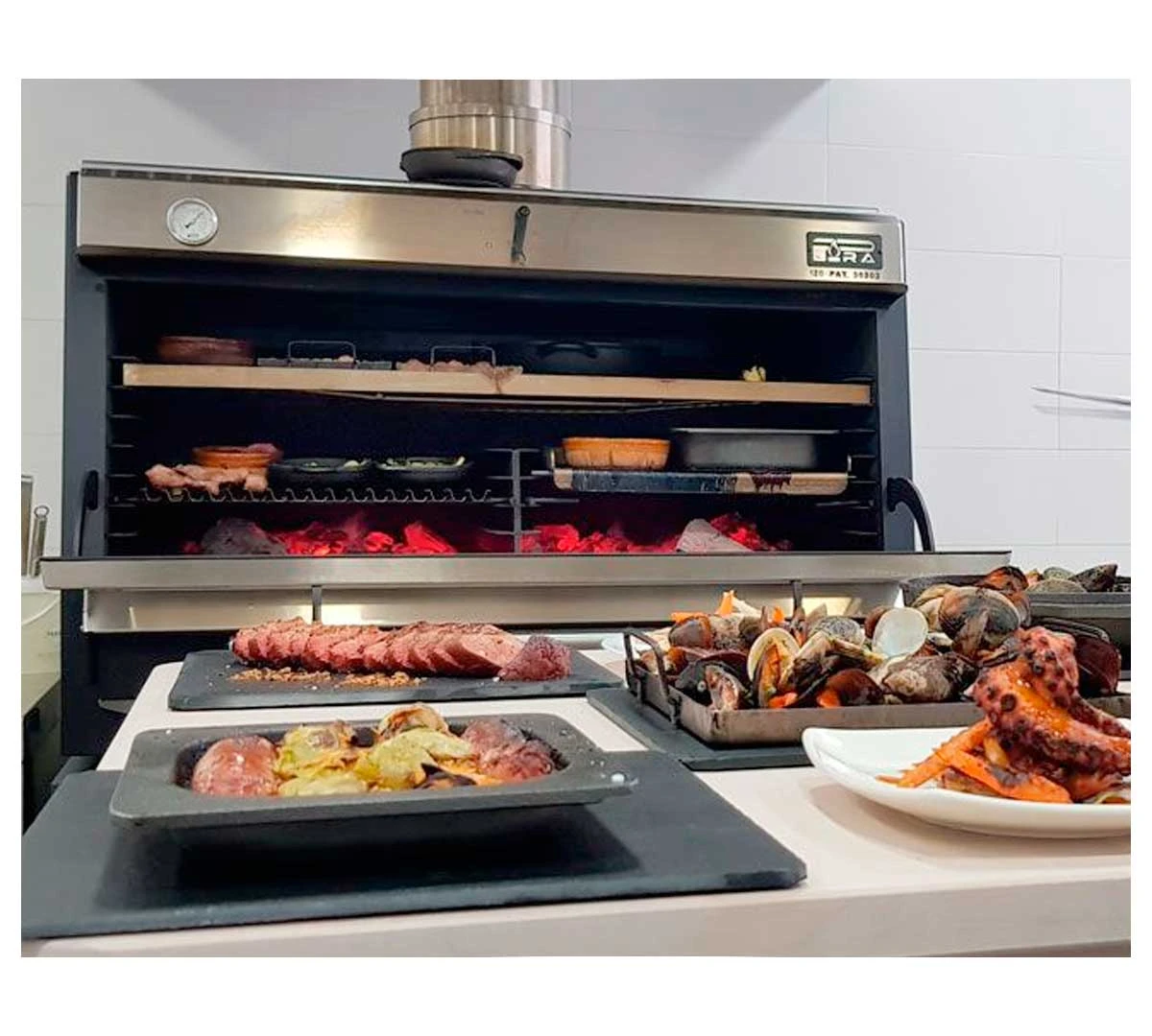 El Horno Brasa Pira 120 XL Lux es ideal para restauración. Se puede cocinar todo tipo de alimentos como pescados y verduras. Provisto de sistema de refrigeración PiraCold® para ahorrar energía y evitar la emisión de calor.