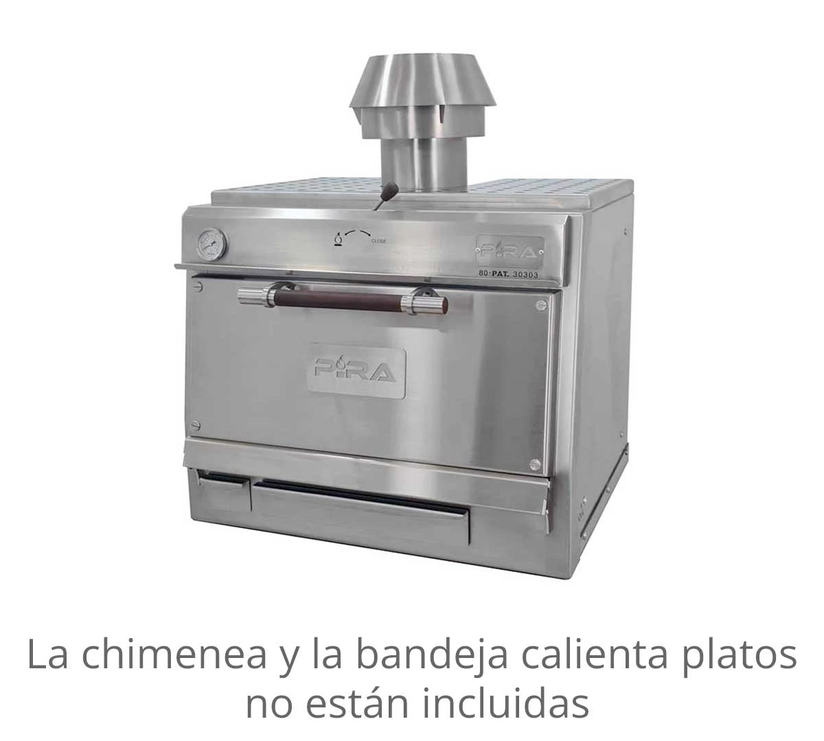 - Equipado con termómetro, cortallamas y regulador de tiro interno, preparado para funcionar desde el primer momento, situándolo únicamente bajo una campana.