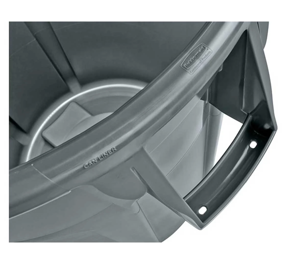 El Contenedor Brute Redondo 166,5 litros de Rubbermaid permite extraer las bolsas de basura más fácilmente gracias a sus calanes de ventilación. Las ranuras de sujeción integradas permiten asegurar las bolsas para poder cambiarlas sin hacer y deshacer nudos.