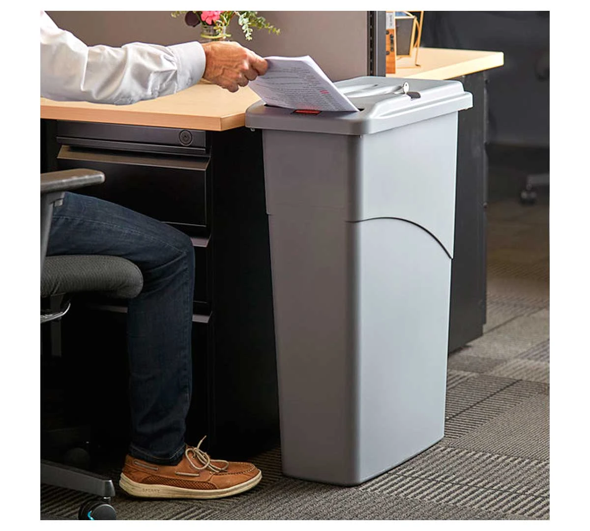 El Contenedor para Documentos con Tapa Slim Jim está diseñado para colocarse al lado de mostradores, escritorios, etc.