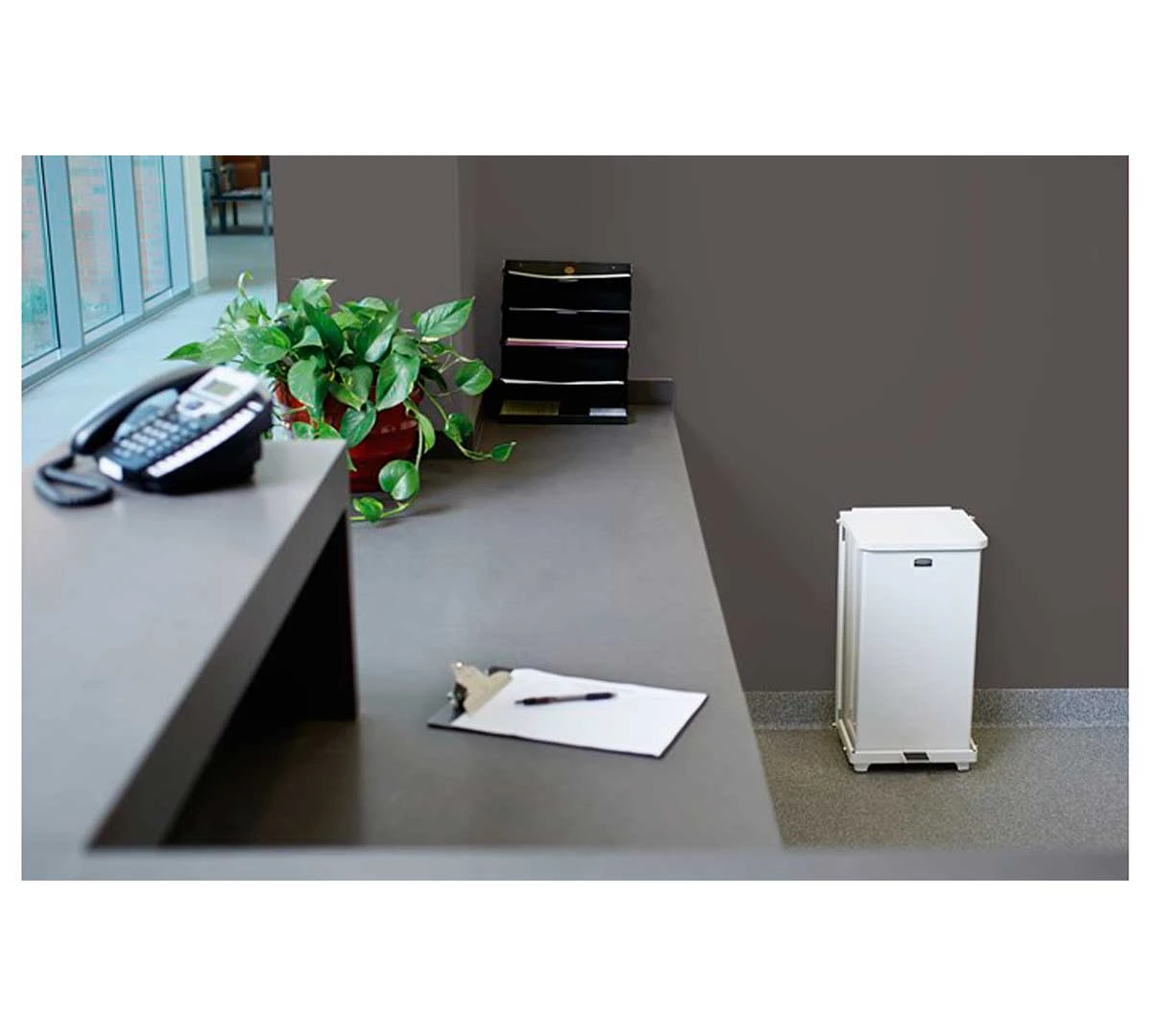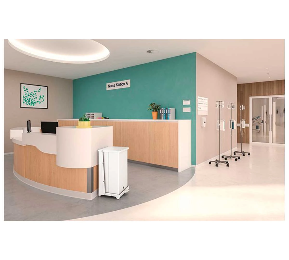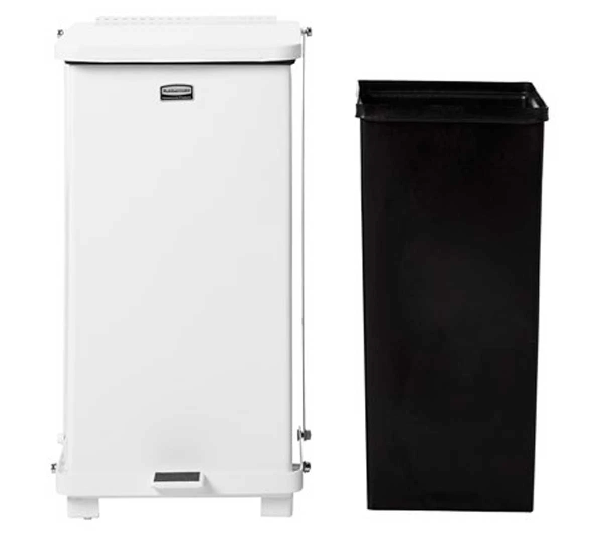 El Contenedor Defender 90 litros de Rubbermaid está fabricado en acero galvanizado prelacado y es resistente a incendios. Recomendado para entornos hospitalarios.