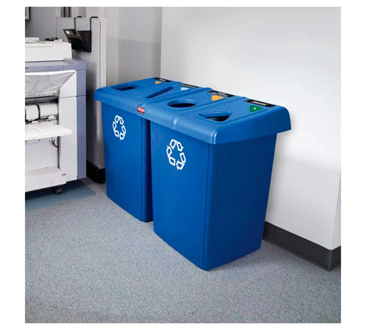 El Centro de Reciclaje Glutton de Rubbermaid es una solución de gran capacidad y centralizada para una clasificación de residuos de forma eficiente.