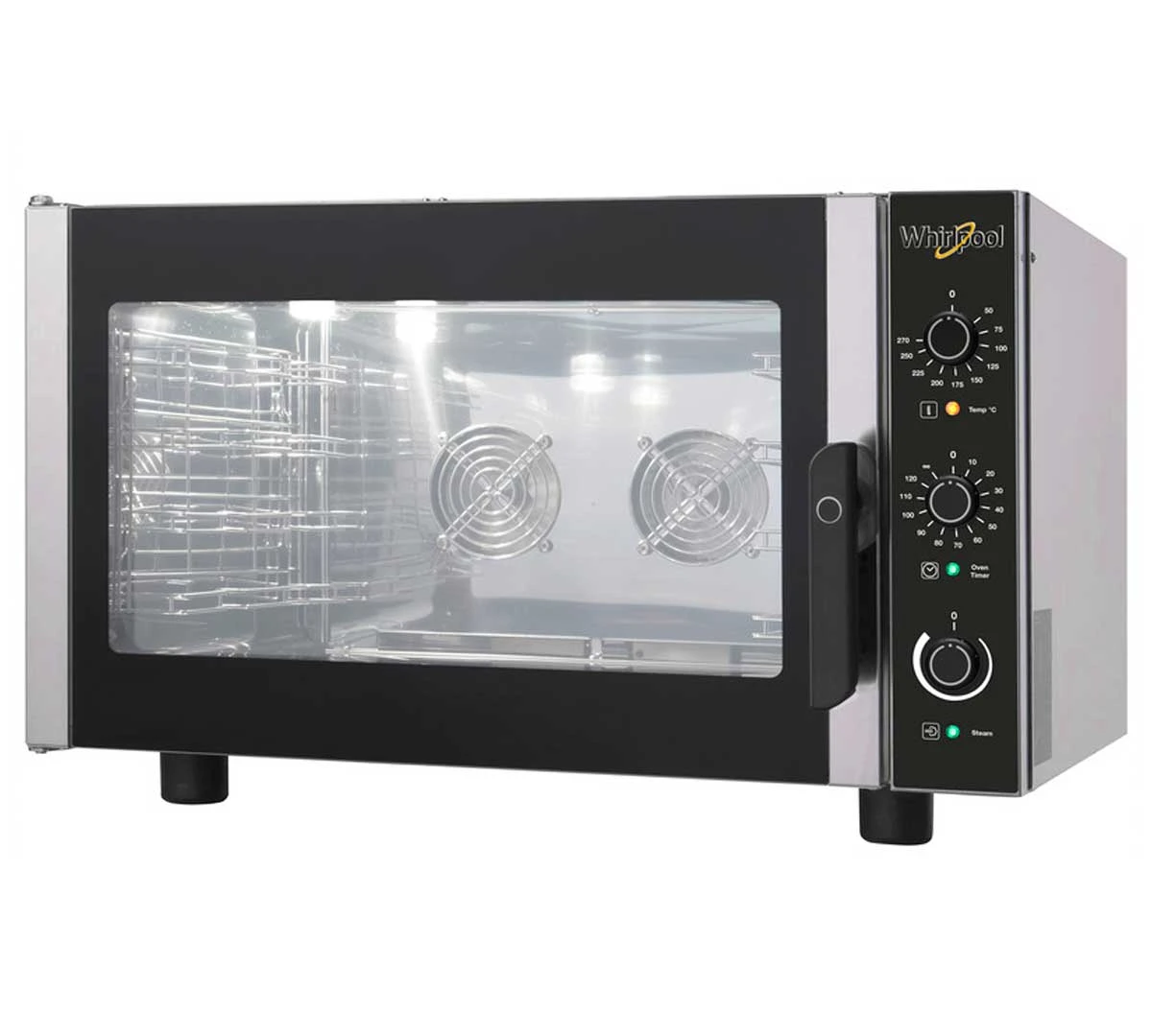 El Horno Convección + Vapor AFO EM 4SV de Whirlpool es un horno profesional eléctrico de convección + vapor. Tiene panel de control mecánico y capacidad para 4 bandejas tamaño GN 1/1.